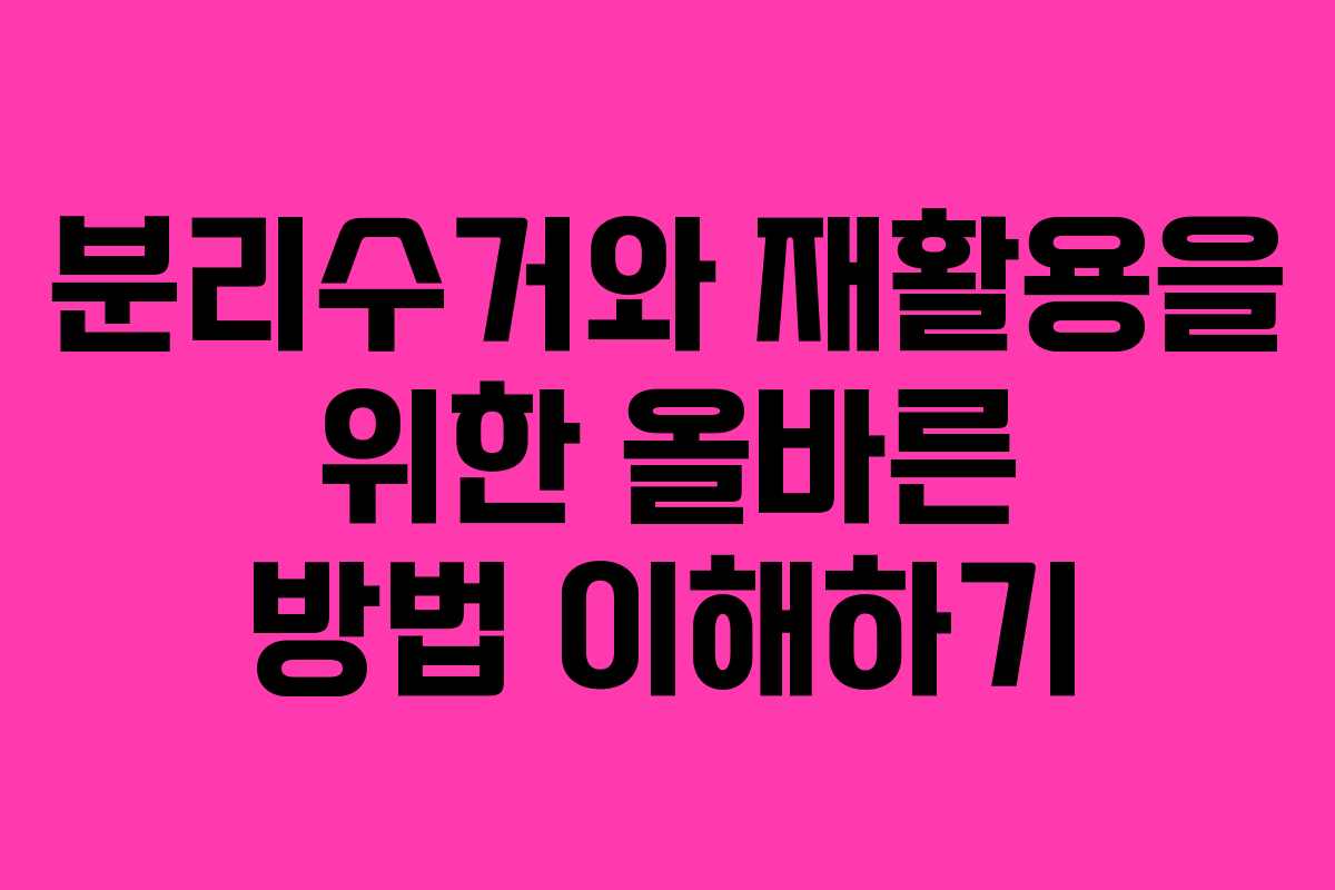 분리수거는 환경 보호와 자원 재활용을 위한 필수적인 행동입니다. 다양한 생활용품의 올바른 분리배출 방법을 이해하고 실천함으로써, 우리의 환경을 소중히 지킬 수 있습니다. 이를 통해 더 나은 미래를 만들어가는 데 동참할 수 있습니다.