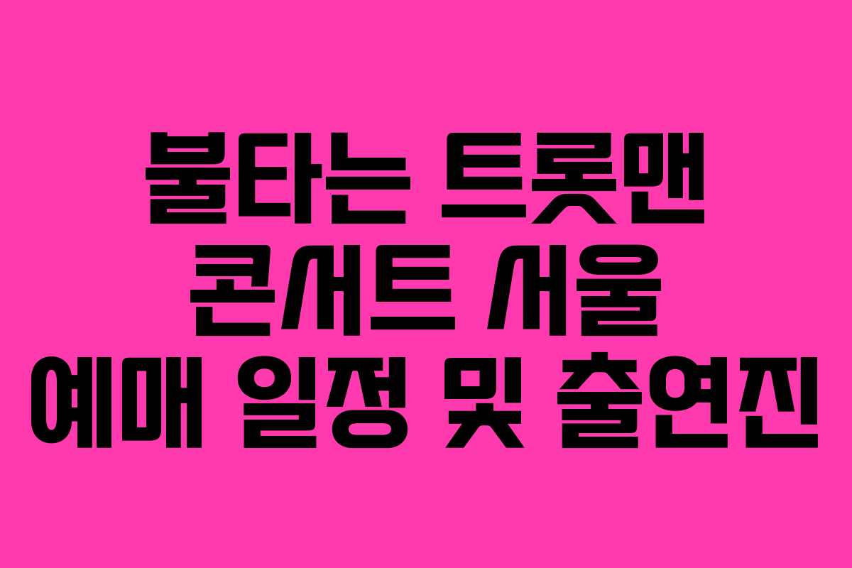 2023년 불타는 트롯맨 콘서트가 전국투어를 통해 많은 팬들에게 다가옵니다. 특히 서울에서 열리는 이번 콘서트는 기대가 큽니다. 이번 글에서는 서울 콘서트의 기본 정보와 예매 일정, 출연진을 소개합니다.
