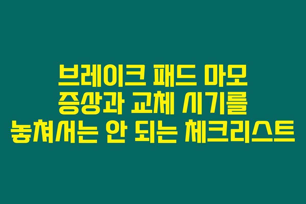 브레이크 패드 마모 증상과 교체 시기를 놓쳐서는 안 되는 체크리스트