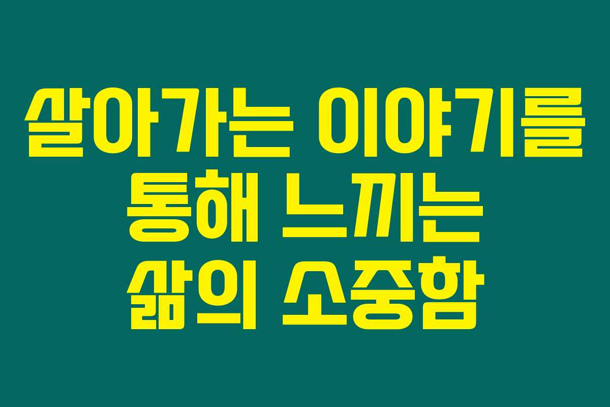 살아가는 이야기는 직관적으로는 단순한 일상이라 생각될 수 있지만, 그 안에는 깊은 의미가 담겨있어요. 여러 경험을 통해 우리가 어떻게 성장하는지 보여주는 한 페이지 같은 것이라 할 수 있는데요. 살아가는 이야기는 각각의 개인에게 독특한 경험을 선사하고, 그로 인해 탄생하는 다양한 감정들은 인생의 또 다른 교훈이 될 수 있습니다.