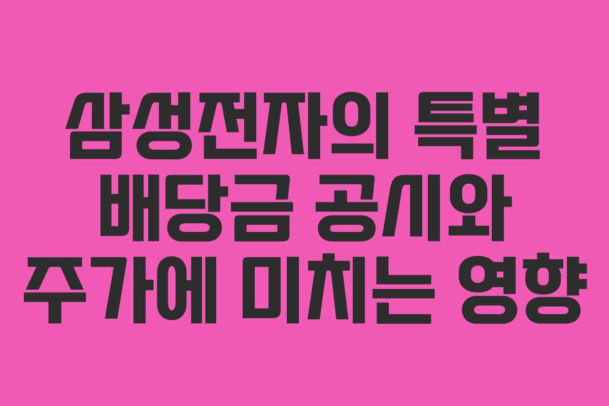삼성전자가 발표한 특별 배당금은 주주 가치를 증대시키기 위한 전략적 결정으로, 주식 시장에서 큰 화제를 모으고 있습니다. 이번 배당금은 삼성전자의 경영 방향과 주가에 어떤 영향을 미칠지 살펴보겠습니다.