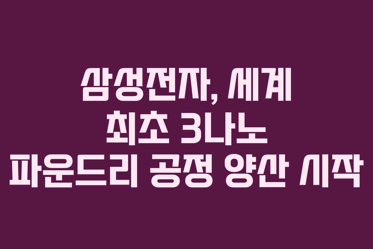 삼성전자가 세계 최초로 Gate-All-Around(GAA) 기술을 적용한 3나노(nm) 파운드리 공정의 초도 양산을 시작했습니다. 이 기술은 반도체 제조에서 가장 혁신적인 공정으로, 삼성전자만이 제공하는 서비스입니다.