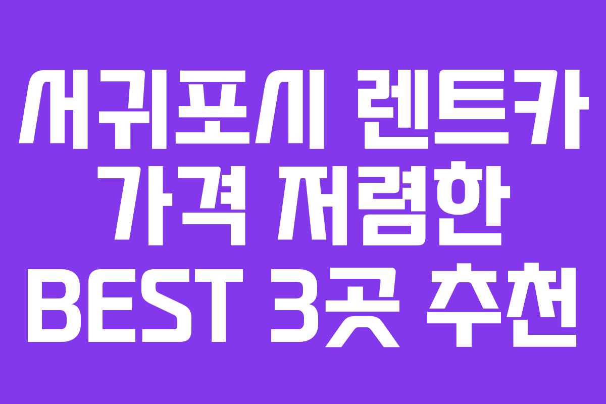 서귀포시 렌트카 가격 저렴한 BEST 3곳 추천