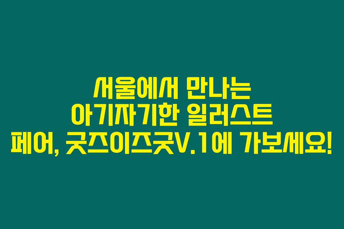 굿즈이즈굿 V.1은 서울에서 열리는 일러스트 페어로, 다양한 일러스트 작품과 굿즈를 한자리에서 만나볼 수 있는 특별한 행사랍니다. 이 페어는 2024년 3월 21일부터 3월 24일까지 세텍에서 진행되며, 입장은 성인 8,000원, 청소년 4,000원으로 이루어집니다.