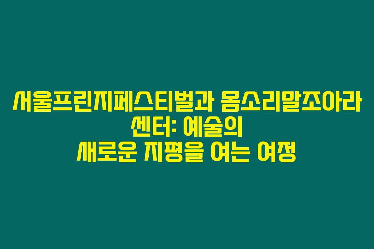 서울프린지페스티벌과 몸소리말조아라 센터: 예술의 새로운 지평을 여는 여정