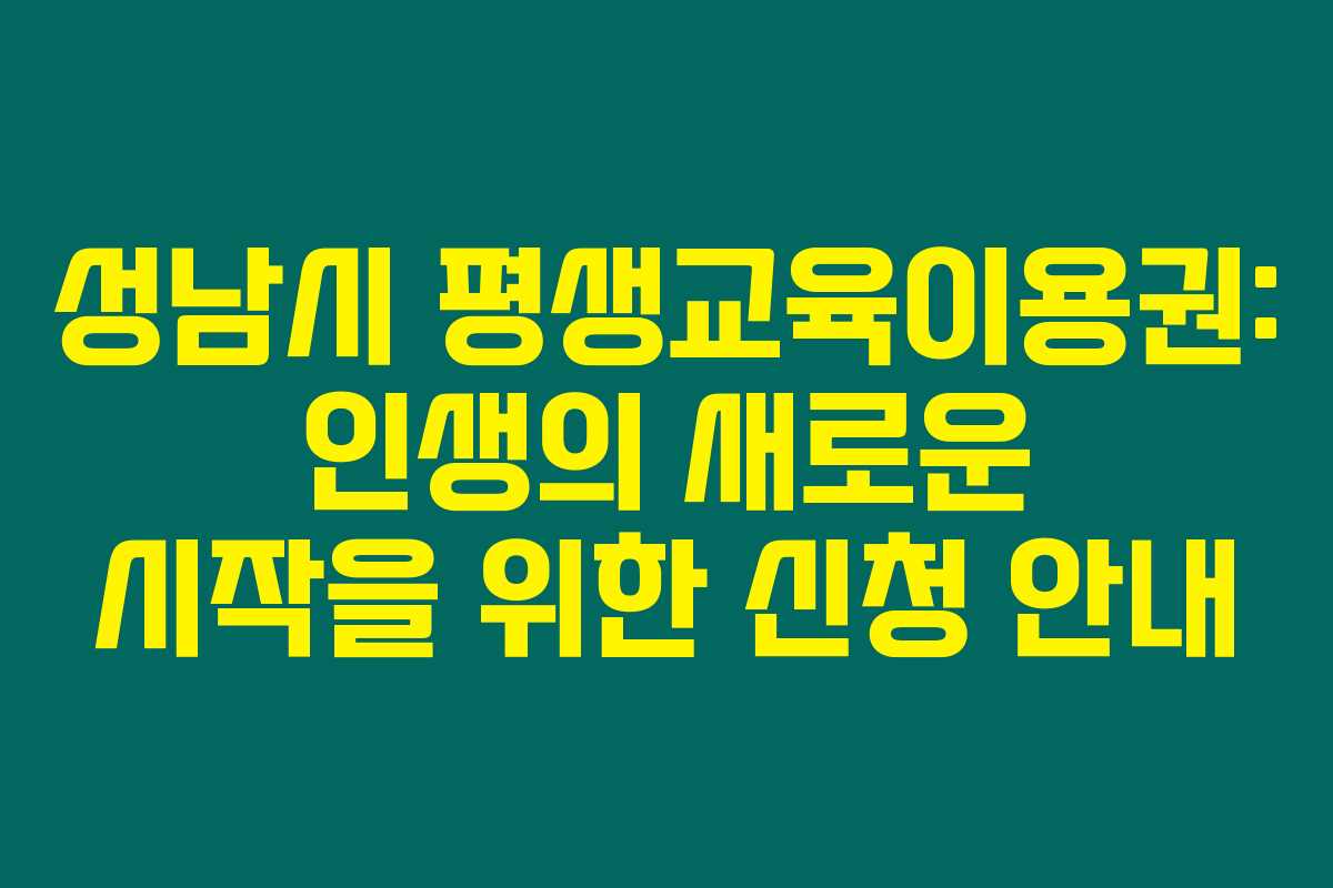 성남시에서는 경제적 부담 없이 새로운 배움을 시작할 수 있는 평생교육이용권 제도를 운영하고 있습니다. 많은 분들이 바쁘고 힘든 일상 속에서 교육에 대한 꿈을 잊고 계시지만, 아래를 읽어보시면 이 제도를 통해 어떤 변화가 가능한지 그리고 어떻게 신청할 수 있는지를 알게 될 것입니다. 여러분의 두 번째 배움을 위해 함께해요!