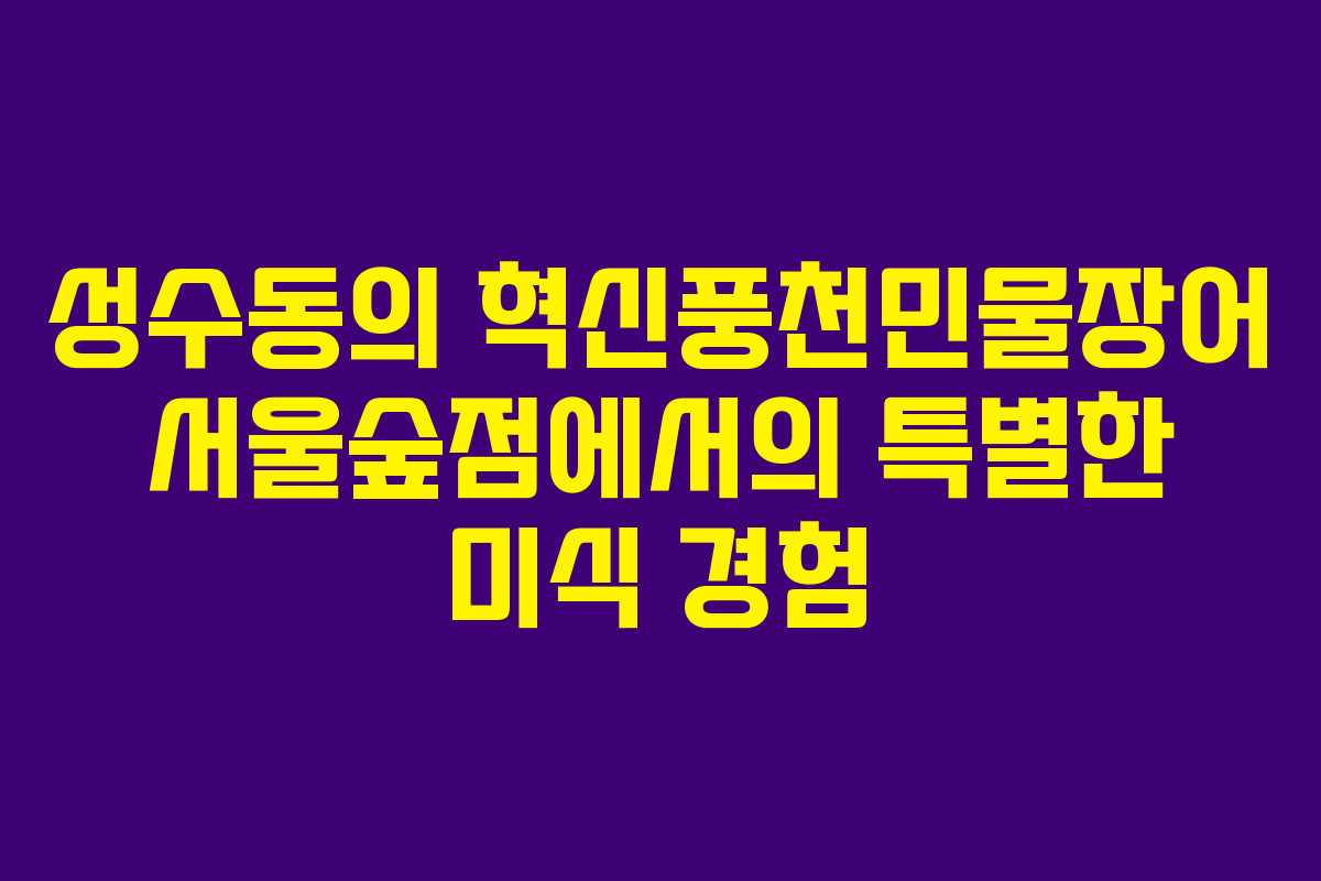 1. 혁신풍천민물장어 서울숲점은 어떤 장점을 가지고 있나요?