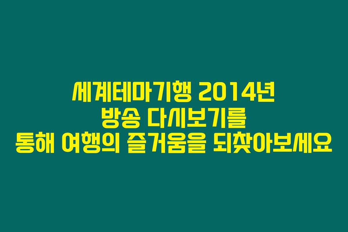 세계테마기행 2014년 방송 다시보기를 통해 여행의 즐거움을 되찾아보세요