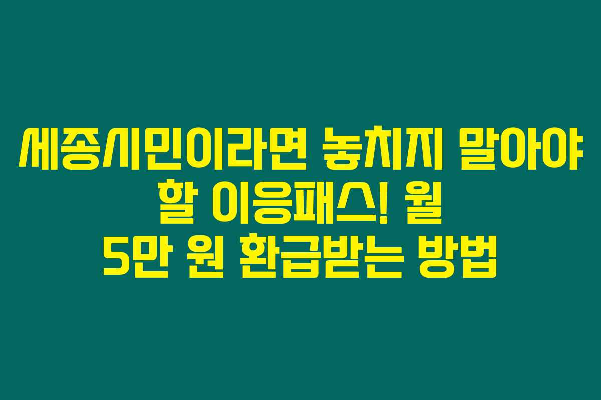 제가 직접 알아본 바로는, 세종시는 교통비 부담을 덜어줄 수 있는 훌륭한 정책을 운영하고 있습니다. 바로 이응패스라는 제도인데요, 이 제도를 활용하면 매달 최대 5만 원의 대중교통비를 환급받을 수 있습니다. 세종시에 거주하는 시민이라면 이 소중한 혜택을 꼭 챙기는 것이 좋습니다. 아래를 읽어보시면 이응패스의 신청 방법부터 혜택을 받는 과정까지 자세히 알 수 있습니다.