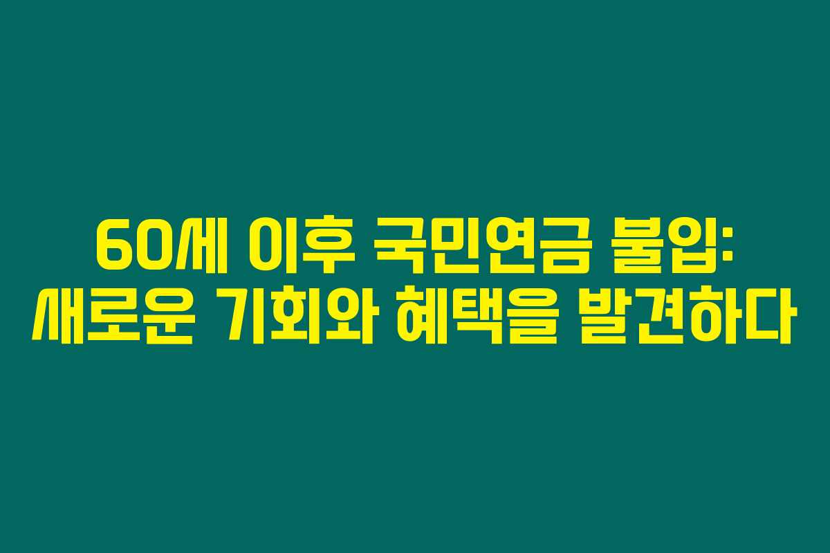 60세 이후에도 국민연금에 불입할 수 있으며, 이는 추가 연금 수령액을 늘리는 데 기여합니다. 관련된 자세한 정보는 국민연금공단에서 확인할 수 있어요.