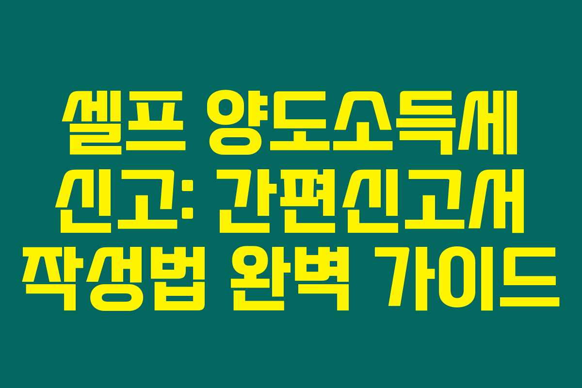 제가 직접 경험해본 결과로는, 셀프 양도소득세 신고는 복잡한 과정일 수 있지만, 정확하게 이해하고 준비하면 충분히 가능합니다. 많은 분들이 세무사에게 높은 수수료를 지불하는 이유도, 이 과정이 어렵다고 판단하기 때문인데요. 아래를 읽어보시면, 양도소득세 간편신고서 작성법이 이렇게 간단할 수 있다는 사실을 아실 수 있을 거예요.