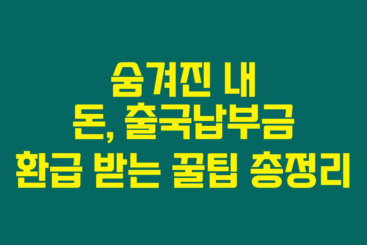 여러분의 소중한 돈은 출국납부금 환급 서비스로 쉽게 돌려받을 수 있습니다. 이 기회를 통해 여행 경비를 절약하는 방법을 놓치지 마세요. 지금 바로 흥미로운 여행을 위해 이 정보를 활용해 보세요!