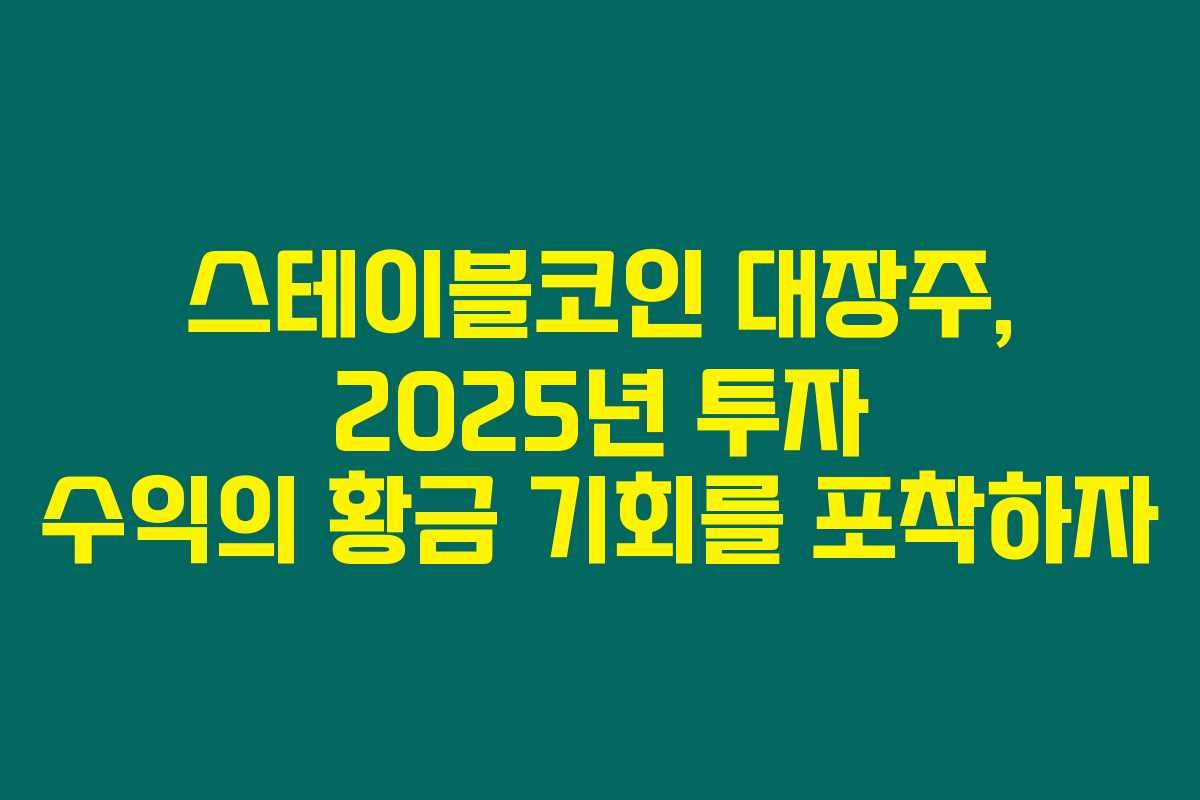 제가 직접 리서치해본 바로는, 스테이블코인이 2025년 금융 시장에서 큰 상승세를 보일 것으로 예상되며, 이에 따라 관련 대장주들이 주목받고 있습니다. 스테이블코인의 특성과 투자 기회를 알고 싶으시다면, 아래를 읽어보시면 많은 도움이 될 것입니다.