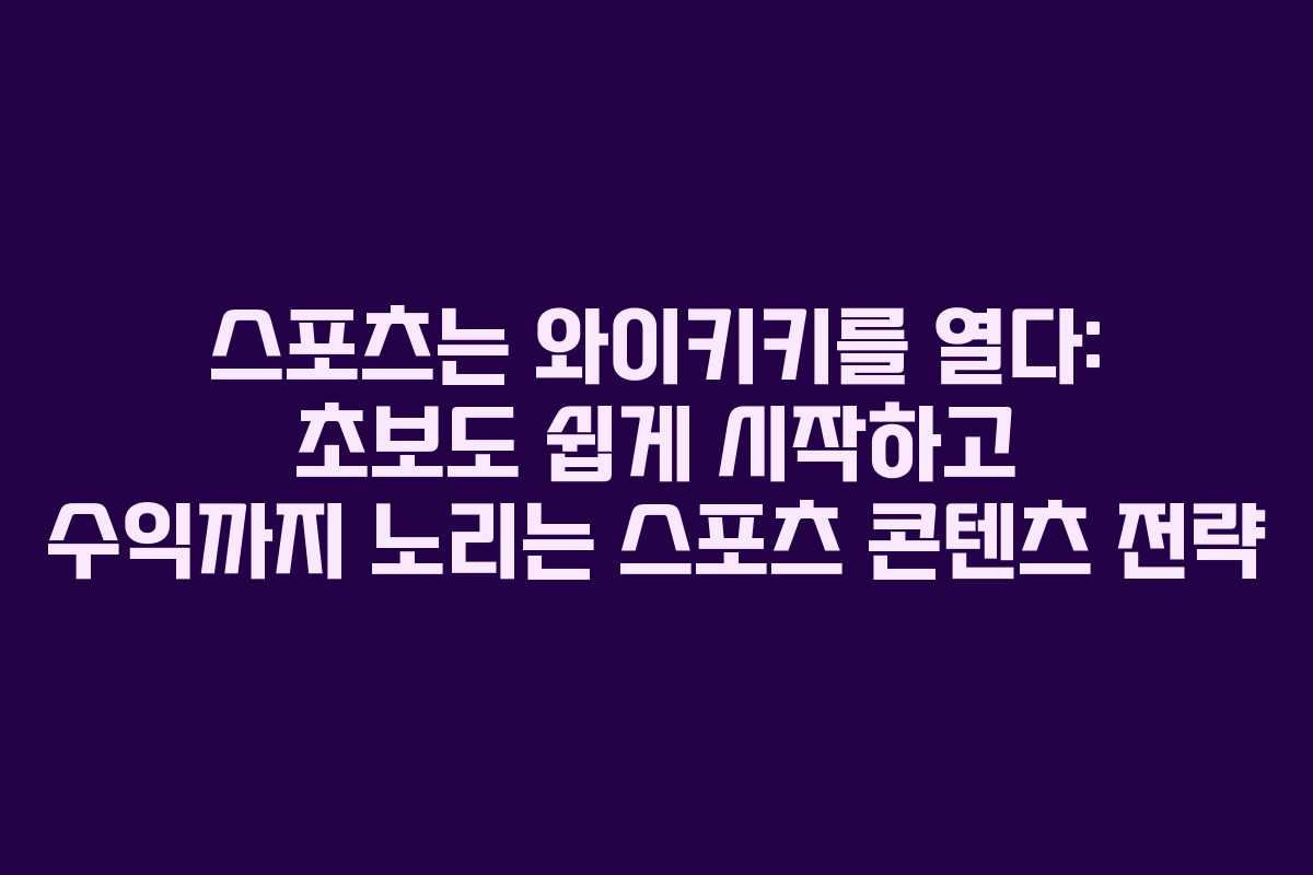 아래를 읽어보시면 스포츠는 와이키키로 시작하는 초보 콘텐츠가 구글/네이버 상위에 오르는 비밀과 수익화 포인트를 한눈에 이해할 수 있습니다.