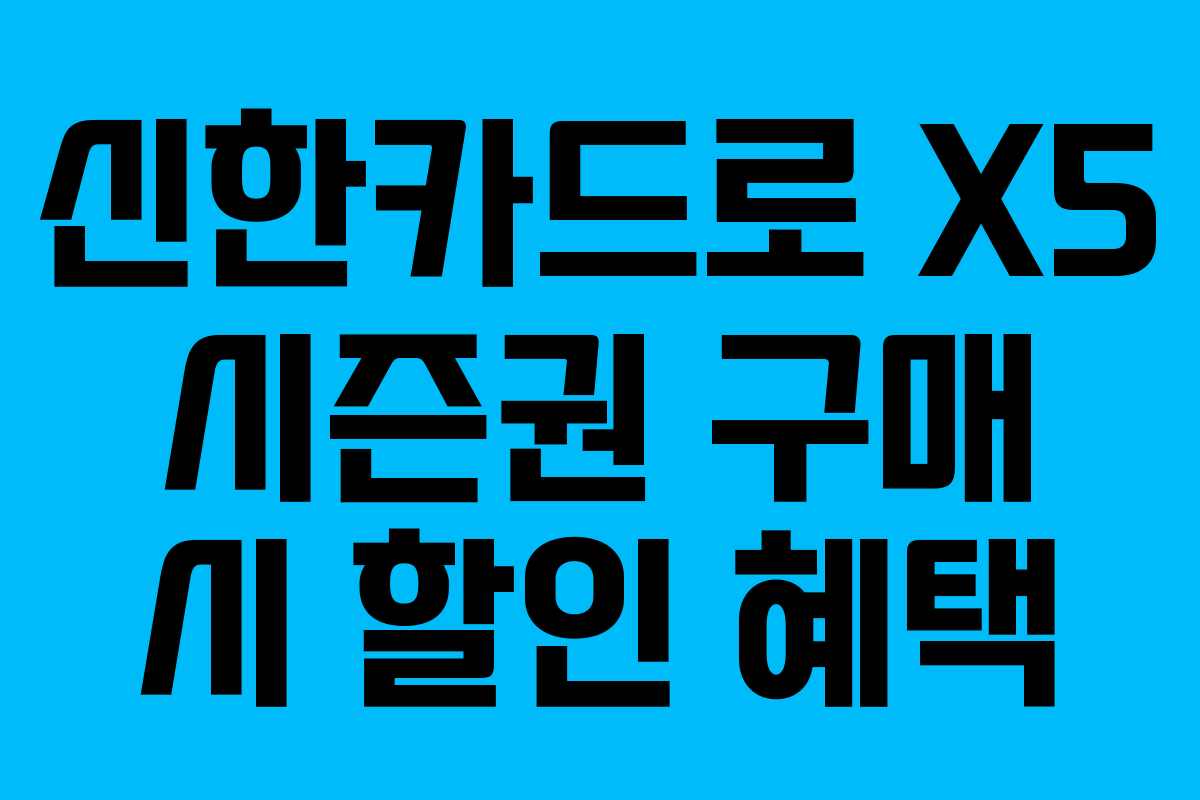 신한카드를 활용하여 X5 시즌권을 구매하면 여러 가지 매력적인 할인 혜택을 누릴 수 있습니다. 이 포스트에서는 신한카드의 할인 혜택 및 활용법에 대해 자세히 알아보겠습니다.