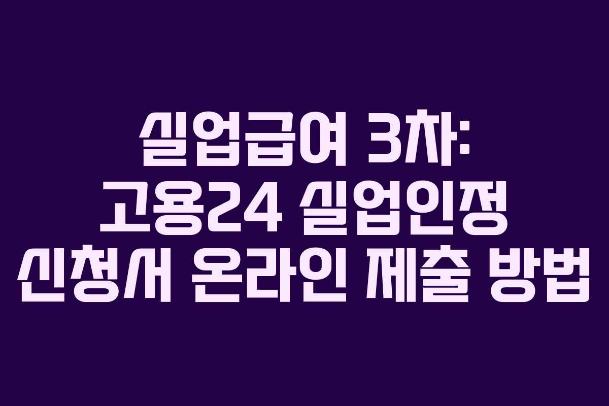 실업급여는 실업 상태에 있는 구직자에게 지원되는 중요한 제도입니다. 이번 포스팅에서는 3차 실업인정 신청서를 고용24를 통해 온라인으로 제출하는 방법에 대해 자세히 소개합니다.
