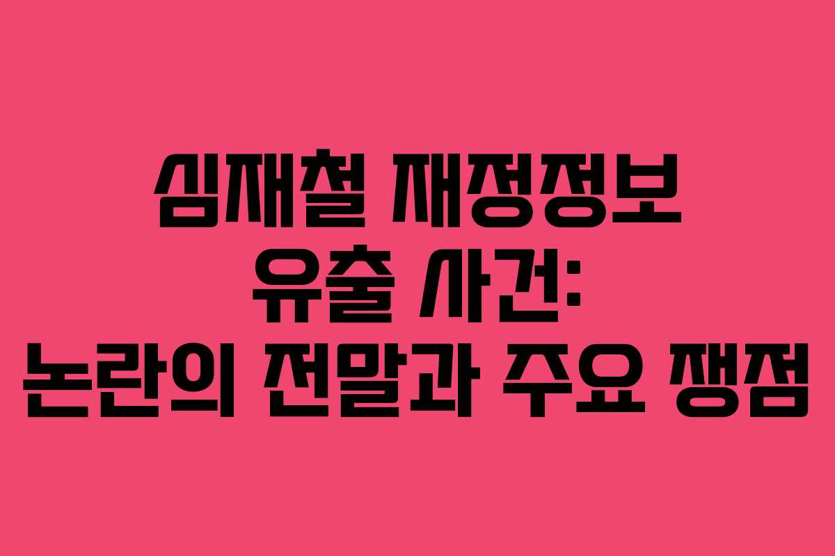 심재철 재정정보 유출 사건: 논란의 전말과 주요 쟁점