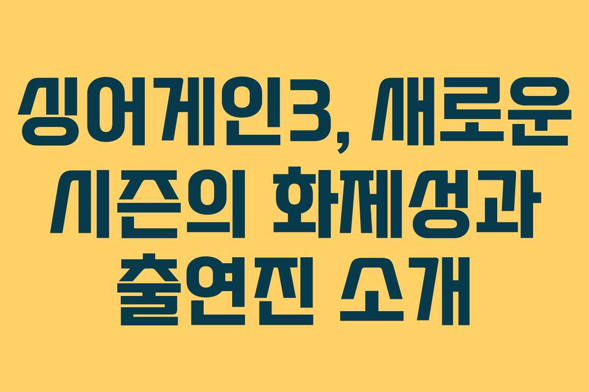 최근 싱어게인3가 다시 한번 시청자들의 관심을 끌고 있습니다. 이 시즌은 다양한 장르의 젊은 뮤지션들이 참가하며, 많은 명곡들이 탄생하고 있습니다. 또한, ‘싱어게인 키즈’의 출연으로 더욱 폭넓은 시청자층을 형성하고 있습니다. 방송은 매주 목요일 밤 10시에 방영되며, 놓친 방송은 재방송으로 시청할 수 있습니다.