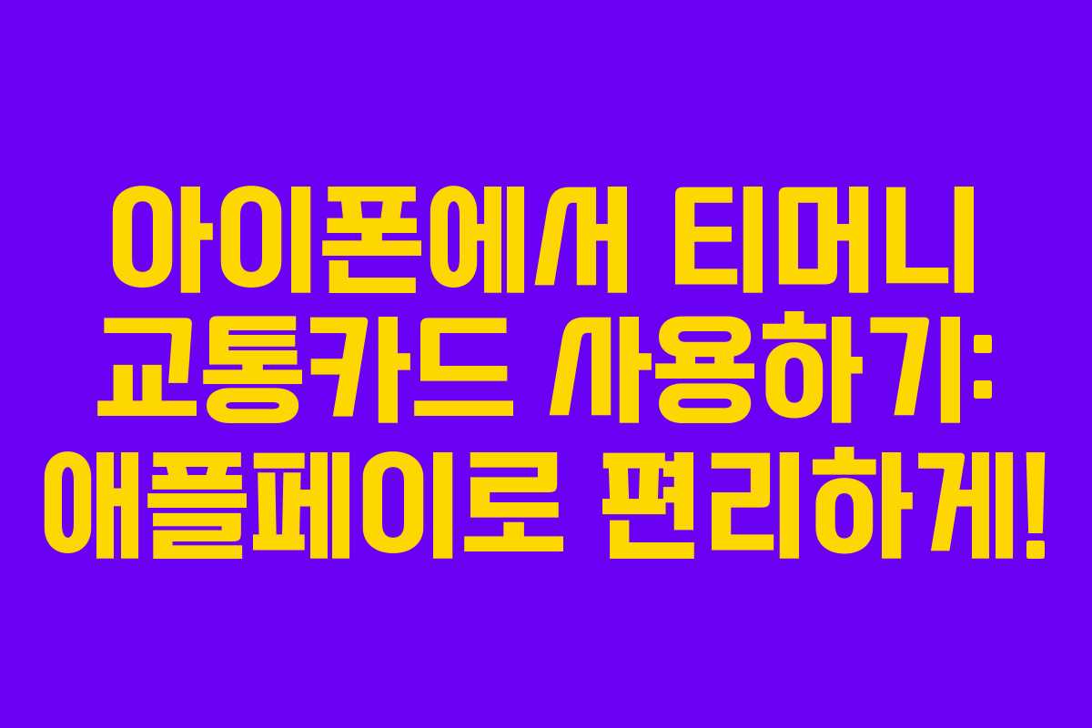 아이폰 사용자들에게 희소식입니다! 이제 아이폰으로 티머니 교통카드를 설정하고 사용하는 방법을 통해 더 스마트하게 대중교통을 이용할 수 있습니다. 애플페이를 통해 간편하고 안전한 결제 경험을 제공하는 티머니 교통카드에 대해 알아보겠습니다.