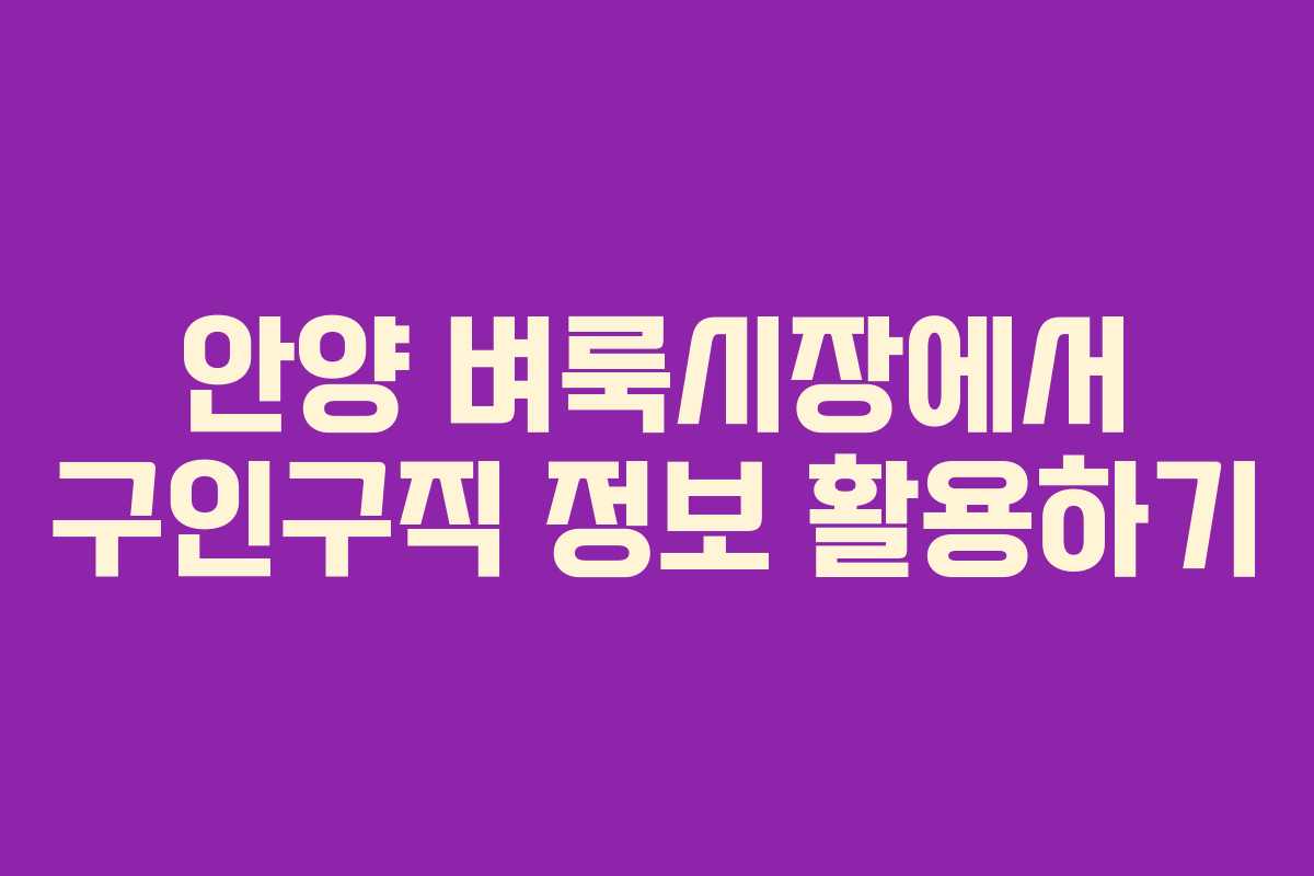 이러한 가이드를 바탕으로 구인구직 활동을 진행하면, 안양 벼룩시장에서 보다 유리한 조건의 일자리를 찾을 수 있습니다.