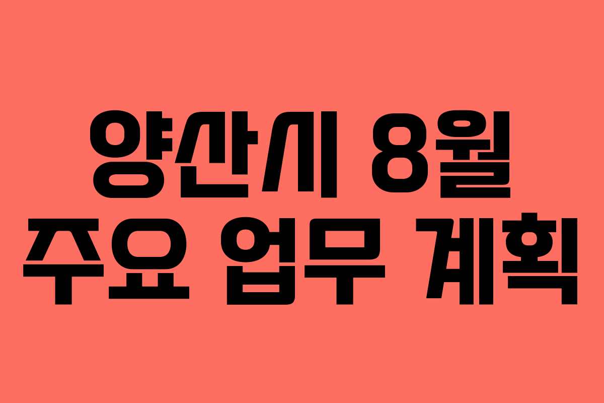 양산시는 8월 중 다양한 주요 업무를 계획하고 있습니다. 이번 계획은 예산 편성, 지방 재정 집행, 고교생 정책 제안 경연대회 등 여러 분야에서 진행될 예정입니다.