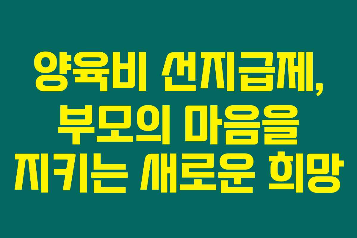 양육비 선지급제, 부모의 마음을 지키는 새로운 희망