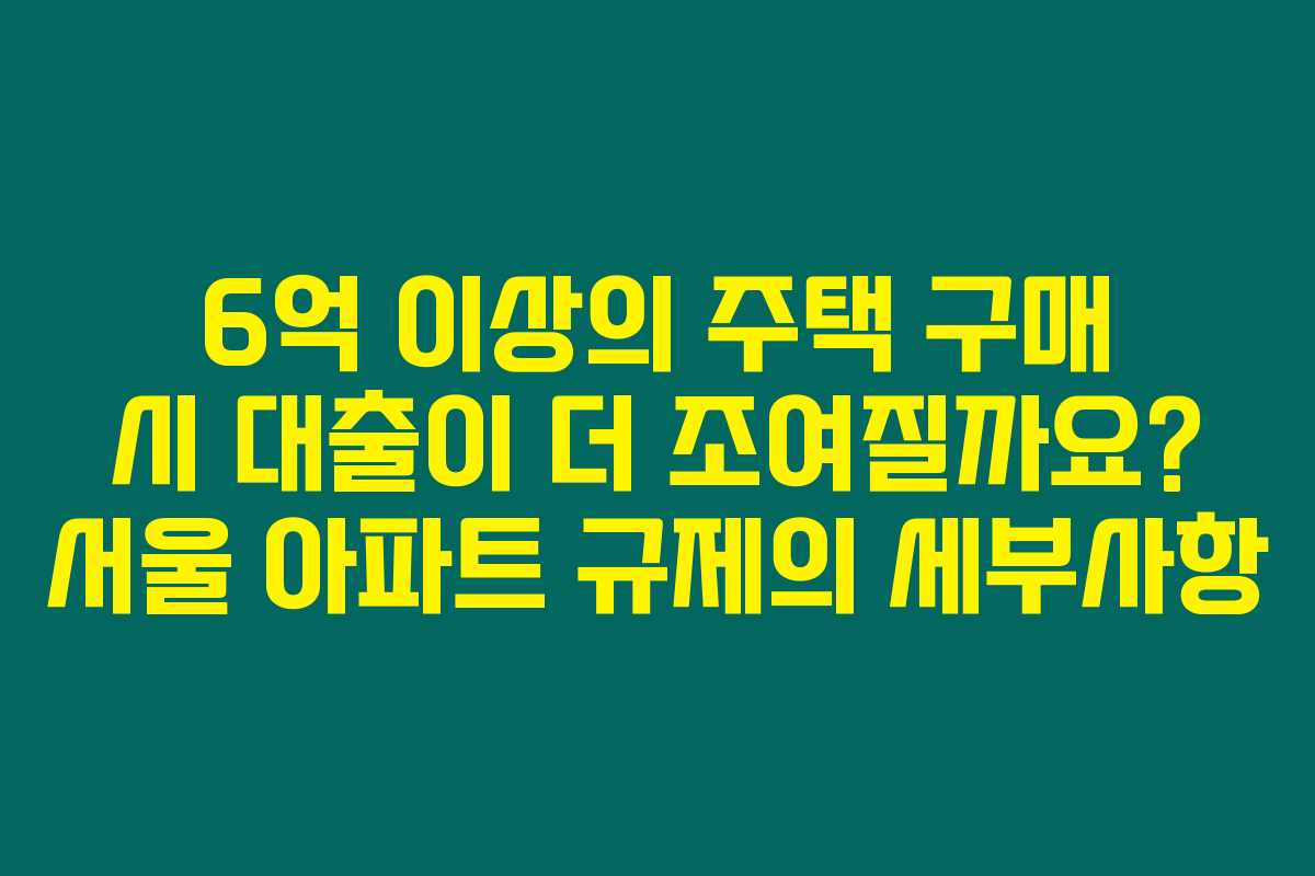 제가 직접 리서치해본 결과로는, 서울에서 6억 원 이상의 아파트를 구매할 경우 대출 규제에 대한 불안 요소가 더욱 커지고 있는 상황입니다. 특히 2023년부터 시행되는 대출 제한이 많은 주택 구매자들에게 영향을 미치고 있으니, 아래를 읽어보시면 자세한 내용과 함께 효과적인 대처 방법을 알 수 있을 거에요.