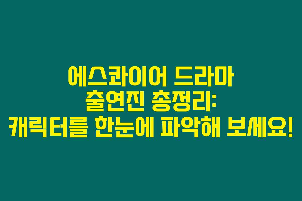 드라마 ‘에스콰이어’의 출연진과 그들의 각각의 역할은 매우 흥미롭고 기대되는 요소가 가득하니 꼭 채널을 맞춰서 시청해보세요!