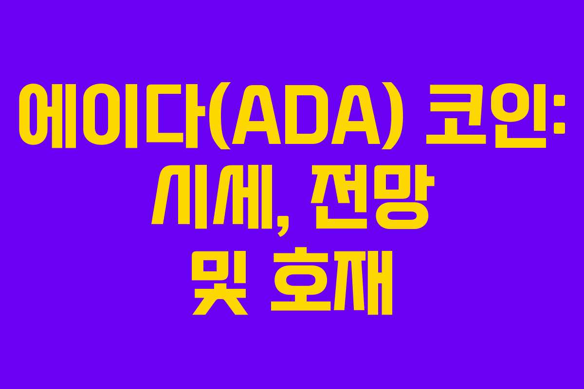 에이다(ADA) 코인은 현재 암호화폐 시장에서 많은 주목을 받고 있는 메이저 코인 중 하나입니다. 카르다노(Cardano) 플랫폼에서 사용되는 이 코인은 금융 애플리케이션을 위한 스마트 계약 플랫폼으로 자리 잡고 있습니다. 이번 글에서는 에이다 코인의 기본 정보부터 시세, 전망, 그리고 호재에 대해 자세히 알아보겠습니다.
