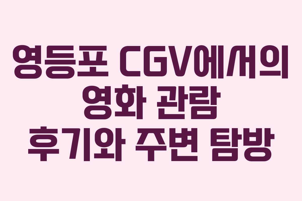 영등포 CGV에서의 영화 관람과 주변 탐방은 정말로 알찬 시간이었습니다. 앞으로도 이런 소중한 경험을 계속 이어가고 싶습니다.