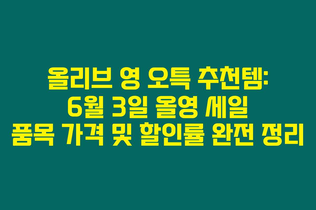 올리브영에서 6월 3일에 진행되는 오특 세일에 참여하고 싶다면, 아래의 필수 정보를 놓치지 말아야 해요. 오늘의 특가로 준비된 다양한 제품들이 최대 63%까지 할인된 가격에 제공된답니다. 만약 세일 제품 목록에 관심이 있다면, 아래 내용을 자세히 읽어보세요. 당신의 쇼핑을 더욱 특별하게 만들어줄 기회니까요!