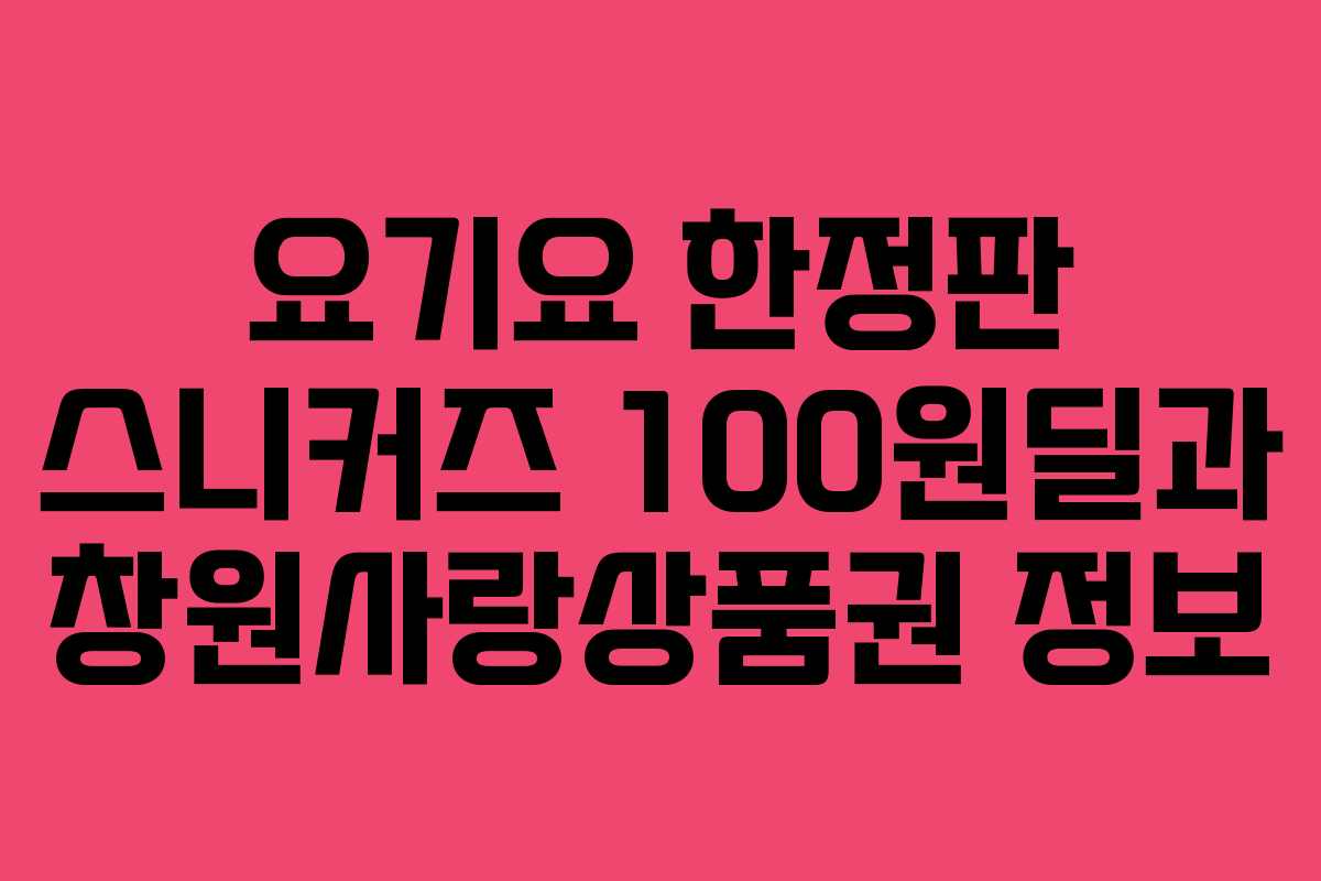 요기요에서 제공하는 한정판 스니커즈 100원딜과 창원사랑상품권에 대한 정보를 알아보겠습니다. 두 가지 모두 소비자에게 매력적인 혜택을 제공합니다.