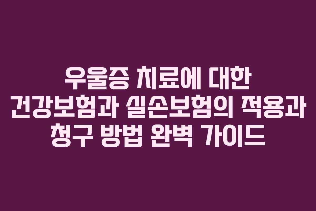 우울증 치료에 대한 건강보험과 실손보험의 적용과 청구 방법 완벽 가이드