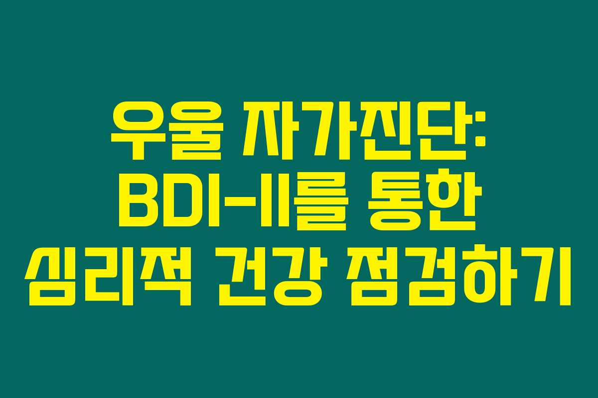 사람들이 우울증으로 고생하는 경우는 많지만, 이를 스스로 인식하기란 쉽지 않아요. BDI-II는 특히 자기 보고 방식을 통해 우울 정도를 정량적으로 평가할 수 있는 검사지요. 이 검사를 통해 자신의 감정을 객관적으로 바라볼 수 있는 기회를 제공합니다.