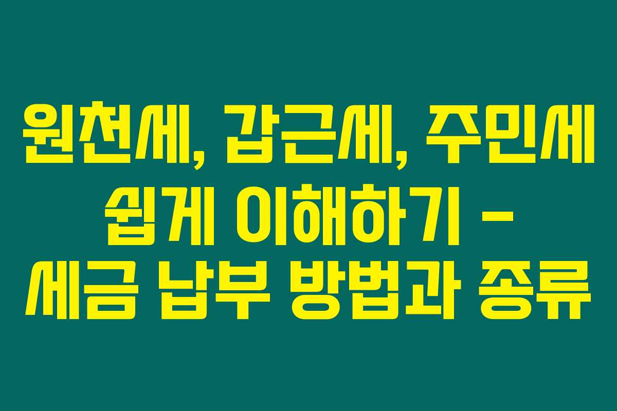 세금이 궁금하신가요? 원천세와 갑근세 그리고 주민세에 대해 정확히 알고 싶다면, 아래를 읽어보시면 많은 도움이 될 거예요. 세금 납부 방법과 종류에 대해 아는 것이 중요하기 때문입니다. 세금 관련 스트레스에서 벗어나고 싶다면, 이 글을 놓치지 마세요!