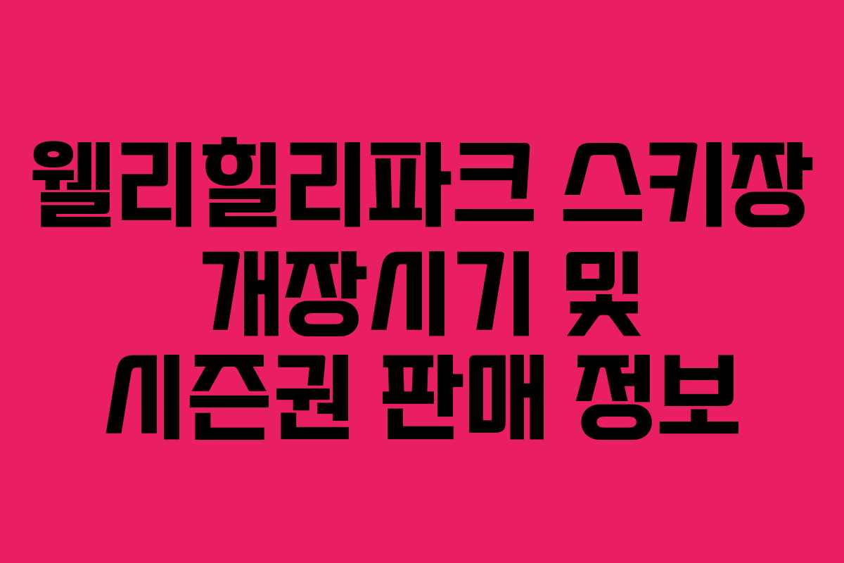 웰리힐리파크 스키장은 스키 애호가들에게 사랑받는 명소로, 2024-2025 시즌의 개장일 및 시즌권에 대한 정보가 많은 관심을 받고 있습니다. 이번 글에서는 개장 시기, 시즌권 판매 일정, 혜택 등을 자세히 알아보겠습니다.