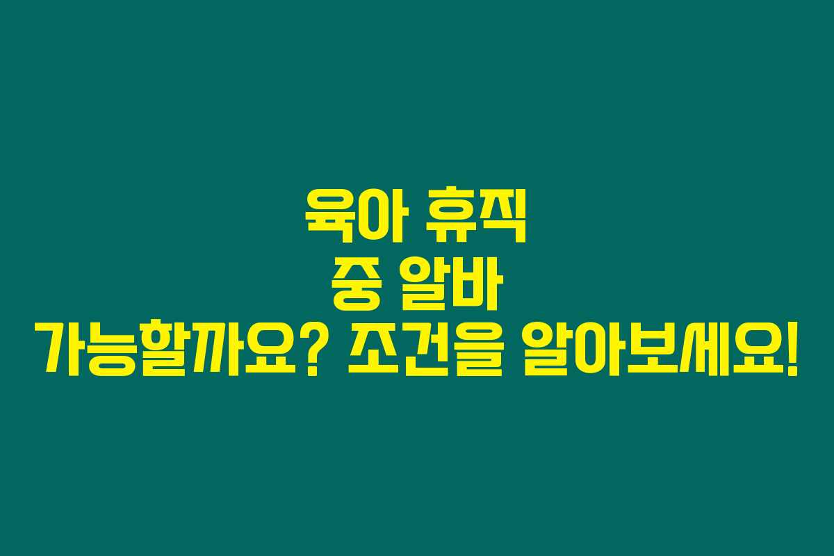 육아 휴직 중 알바를 고려하고 계신가요? 육아 휴직 급여로 생활이 곤란할 때가 많죠. 그래서 아르바이트를 할 수 있는지 궁금하실 것 같습니다. 아래를 읽어보시면 육아 휴직 중 알바를 할 수 있는 조건과 주의할 사항에 대한 정보를 제공할게요.