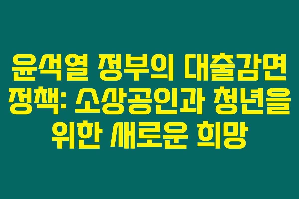 제가 알아본 바로는 윤석열 정부의 대출감면 정책은 소상공인과 저신용 청년들을 특히 고려하여 설계되었습니다. 이 정책들은 직면한 경제적 어려움을 극복하기 위한 다양한 지원책으로, 특히 소상공인 새출발기금, 저리대환, 청년특례채무조정, 안심전환대출 등의 핵심 내용이 담겨 있습니다. 아래를 읽어보시면 이 정책들이 어떤 방식으로 경제적 부담을 덜어줄 수 있는지 자세히 알 수 있을 것입니다.