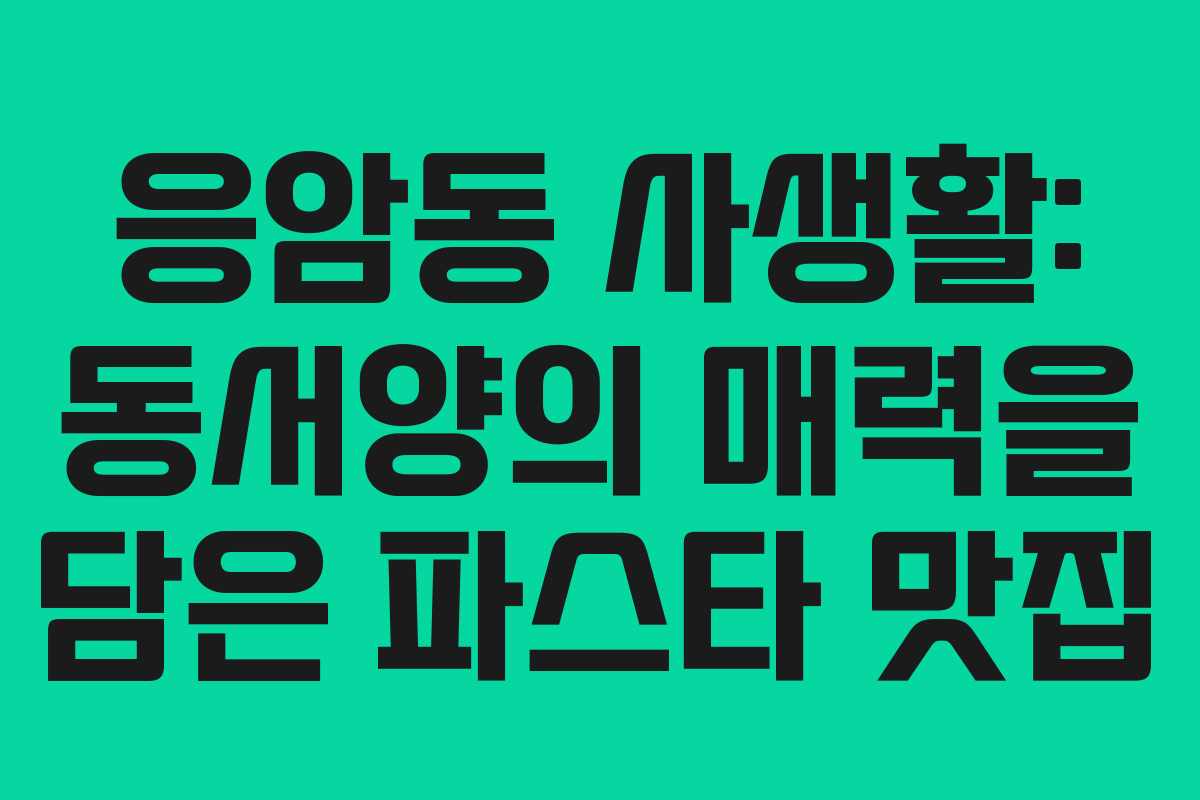 응암동 사생활: 동서양의 매력을 담은 파스타 맛집