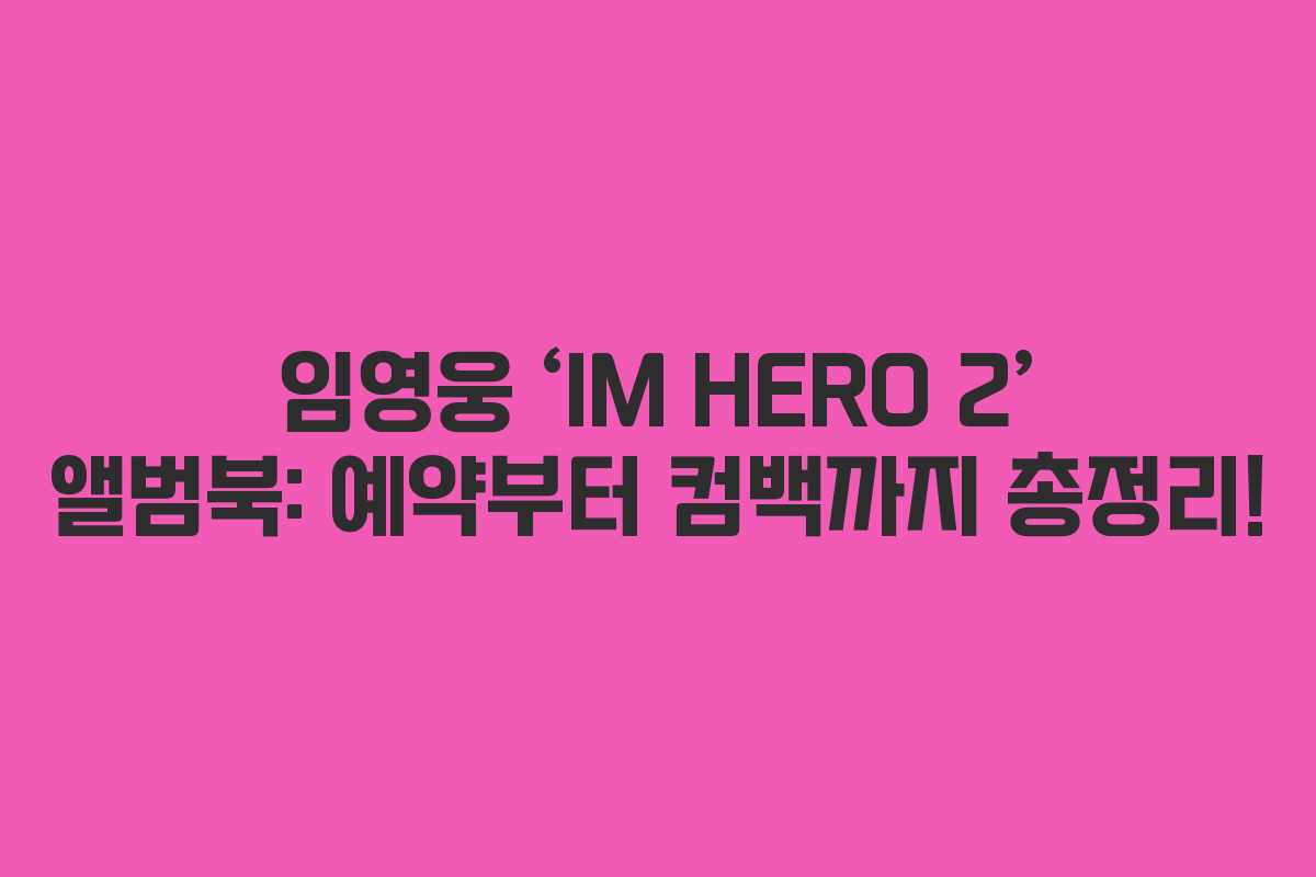 임영웅 팬 여러분, 기다리던 소식이 드디어 도착했습니다! 그의 두 번째 정규 앨범인 ‘IM HERO 2’가 새로운 ‘앨범북’ 형태로 발매됩니다. 첫 앨범 이후 약 3년 만에 선보이는 이번 앨범은 임영웅의 음악적 깊이와 팬들에 대한 진심이 담겨 있습니다. 이제 ‘IM HERO 2’ 앨범북의 발매일, 예약 방법, 특별한 구성, 그리고 임영웅의 컴백 일정 등 모든 궁금증을 해결해 드리겠습니다.