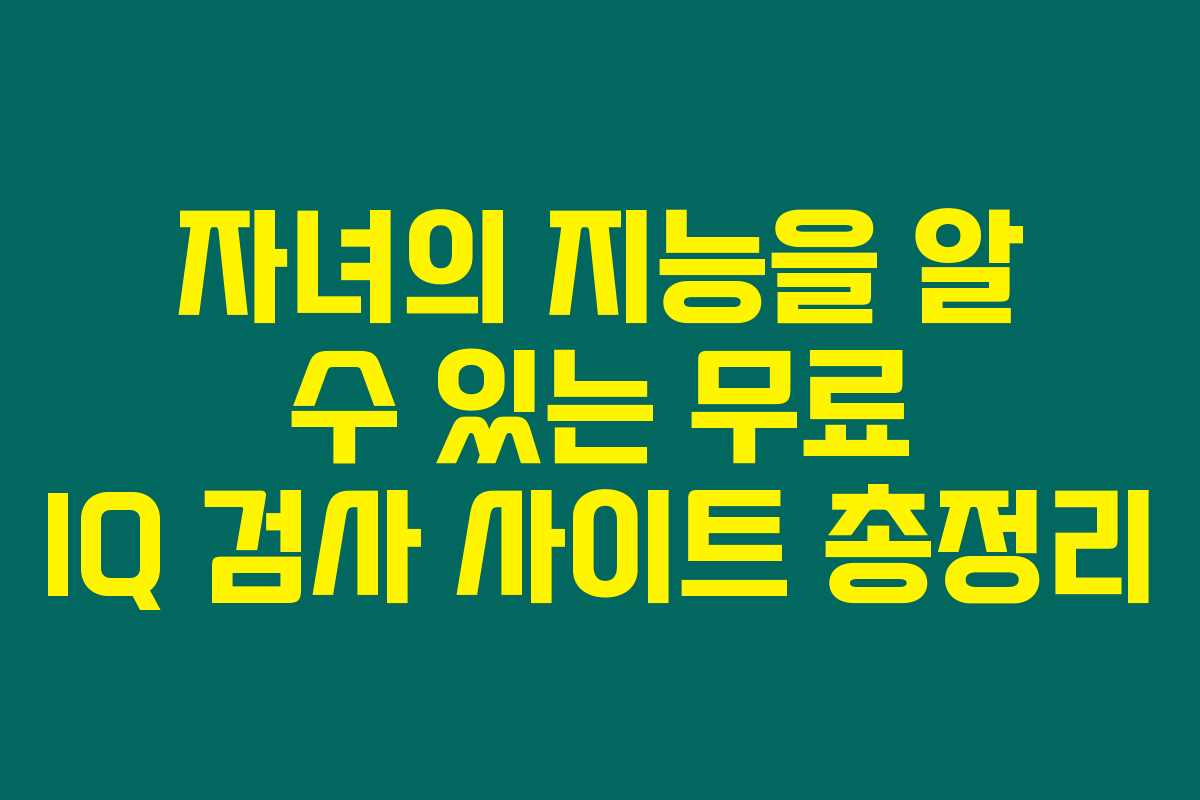 아이의 지적 능력에 대해 고민하고 있는 부모님들이 많으실 텐데요. 오늘은 바쁜 일상 속에서도 손쉽게 자녀의 IQ를 확인할 수 있는 무료 IQ 검사 사이트를 소개하겠습니다. 아래를 읽어보시면, 자녀의 잠재력을 발견할 수 있는 출발점을 제공할 수 있을 것입니다.