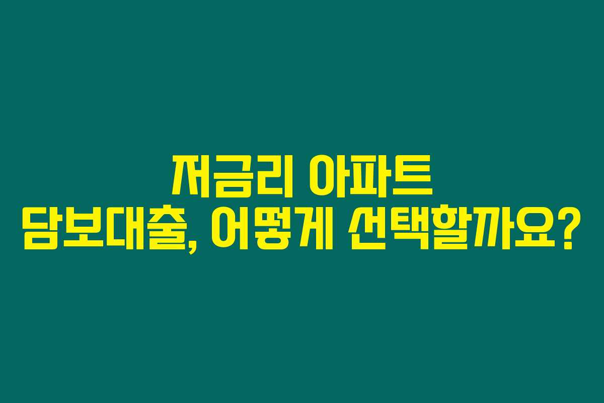 저금리 아파트 담보대출은 대출 이자 부담을 줄여주고, 장기적으로 낮은 상환 금리로 안정적으로 대출을 이용할 수 있는 장점이 있습니다.