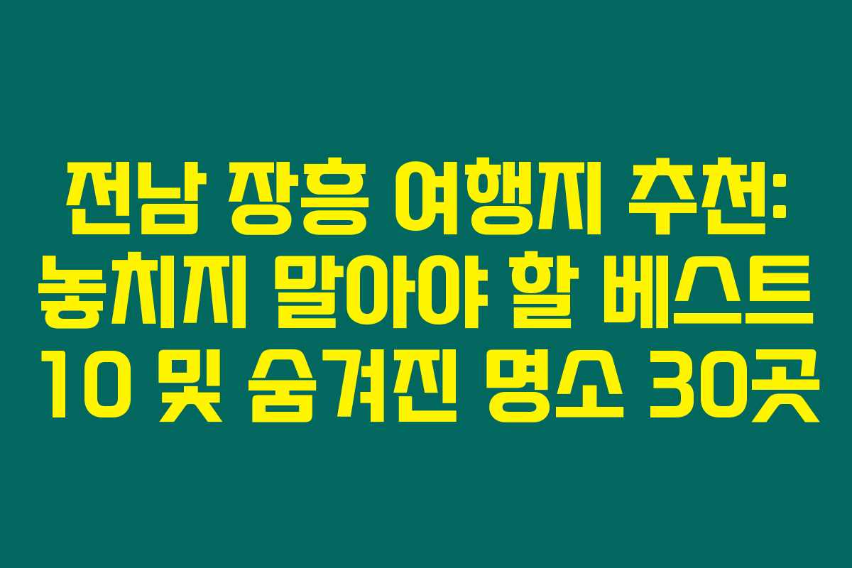 전남 장흥에서 즐거운 여행을 계획 중이신가요? 전남 장흥 가볼만한 곳을 찾고 있다면, 아래의 인기 관광지와 추천 코스를 체크해보세요. 이곳은 숨겨진 보물 같은 장소들이 가득해 여러분의 여행을 더욱 특별하게 만들어 줄 거예요. 혹시 어떻게 시작해야 할지 막막하다면? 걱정하지 마세요! 아래에서 유용한 정보를 한눈에 확인할 수 있답니다.