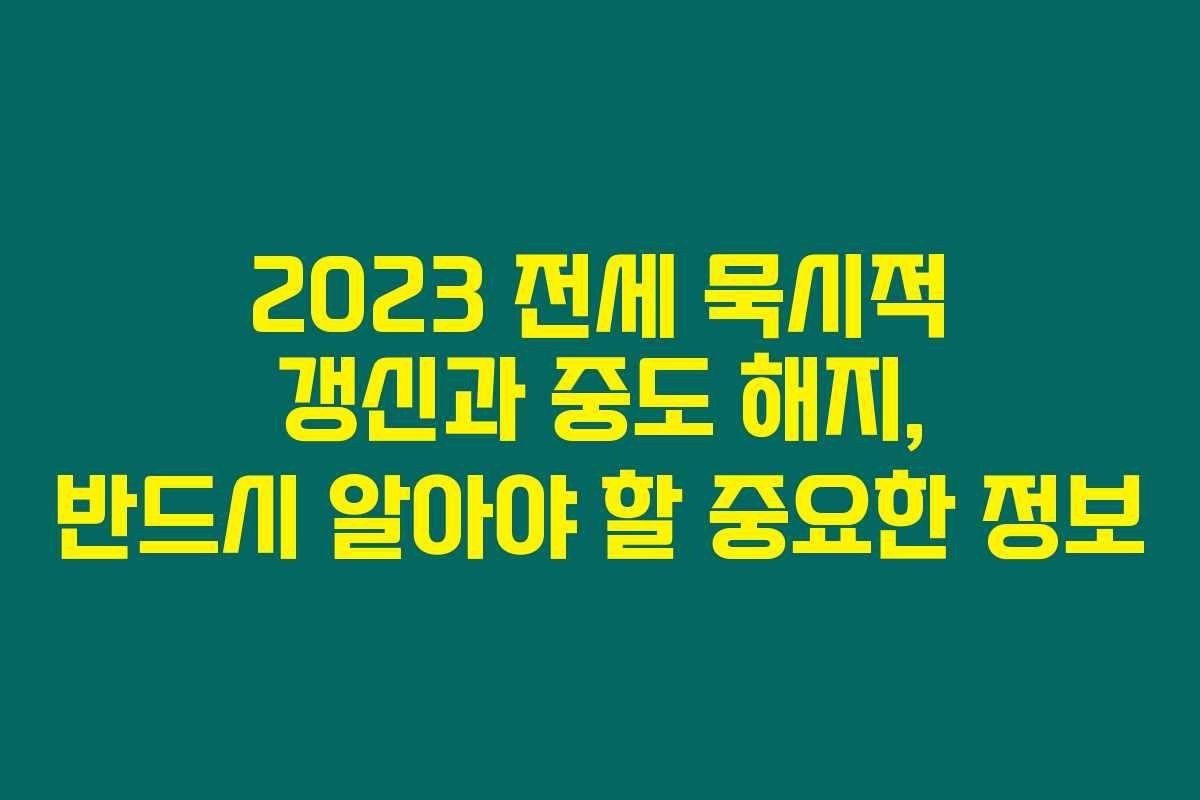 전세 계약을 고민 중이신가요? 전세 묵시적 갱신이라는 이야기를 들어보셨다고 생각해요. 전세 계약이 만료될 때마다 새로운 조건을 협상하는 것이 부담스럽다면 이미 묵시적 갱신에 대해 알고 계실지도 모르겠습니다. 이번에는 전세 묵시적 갱신과 중도 해지에 관한 모든 정보를 쉽게 정리해보았어요. 이러한 내용이 현재 전세 계약을 고민하는 여러분에게 큰 도움이 될 것 같은데요. 아래를 읽어보시면 전세 계약에 대한 이해가 깊어질 거예요.