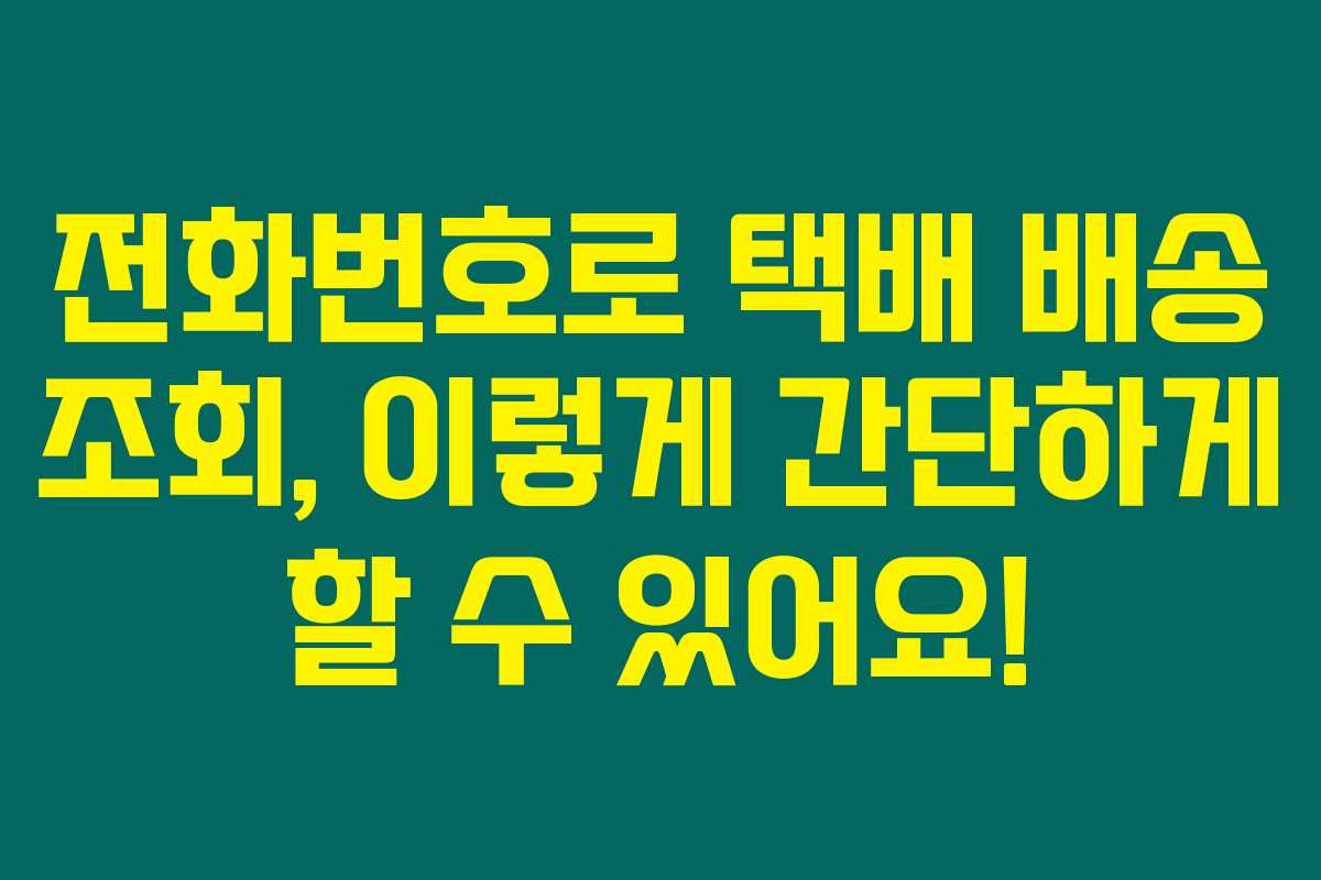 택배 배송 조회는 이제 전화번호만 있으면 가능해요. 다양한 방법을 통해 쉽고 빠르게 확인해 보세요! 필요할 때마다 이 정보들을 기억해 두시면 정말 유용하답니다.