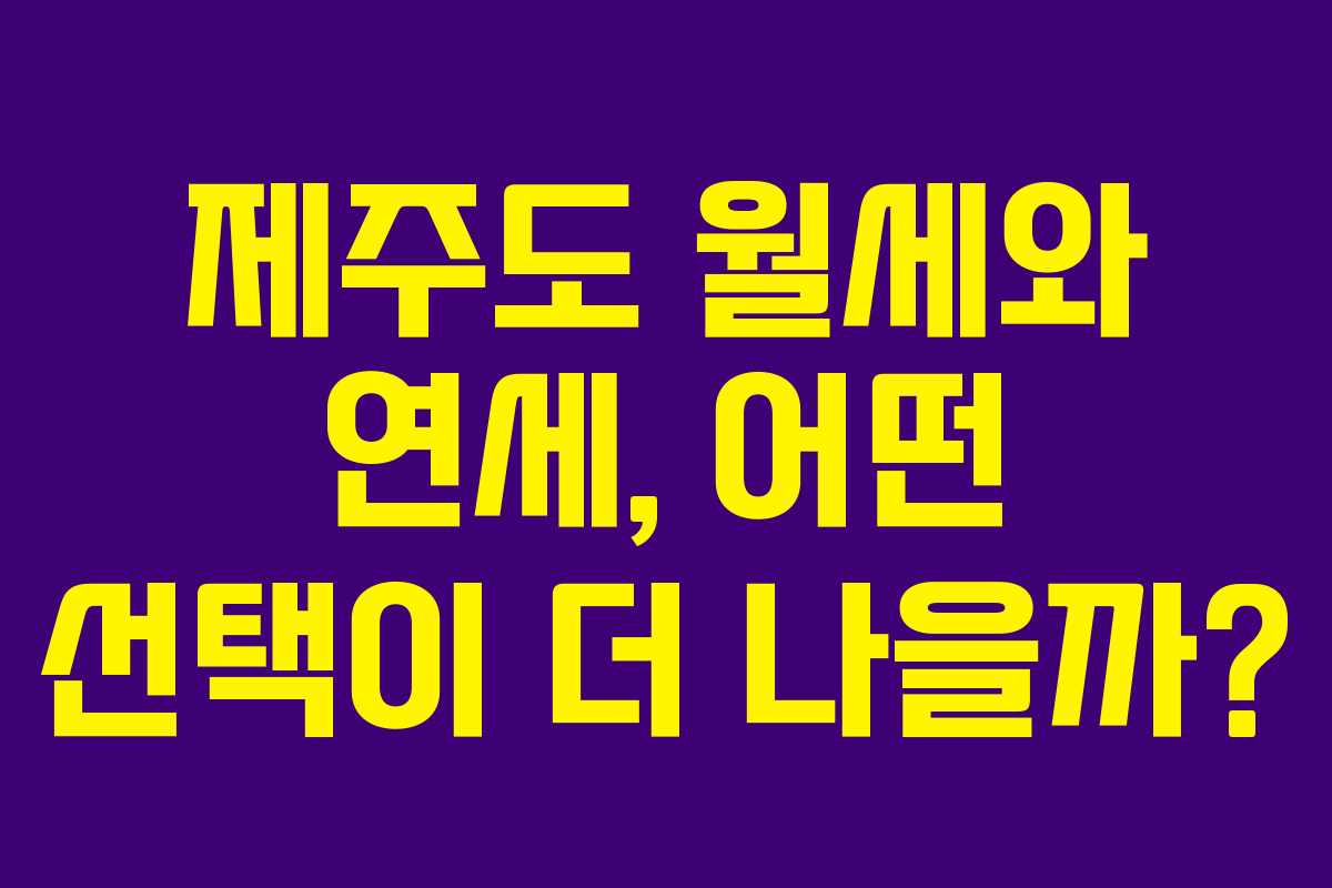 - 계약 유연성: 처음 제주에서 살 경우 월세가 더 유리합니다.