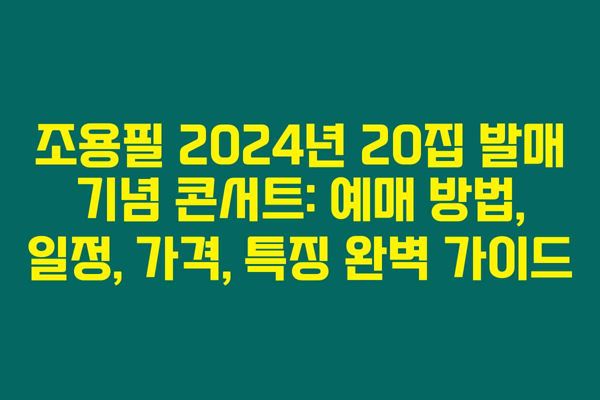 2024년 가을, 대한민국의 음악계의 아이콘인 조용필이 드디어 팬들 앞에 화려하게 돌아옵니다. 그의 20집 정규 앨범과 함께 펼쳐지는 이번 콘서트는 많은 기대를 모으고 있으며, 팬들에게 특별한 순간이 될 것입니다. 아래를 읽어보시면 조용필의 2024년 20집 발매 기념 콘서트 티켓 예매 방법, 일정, 가격, 그리고 콘서트의 주요 특징까지 모두 정리한 정보를 확인할 수 있습니다. 이 기회를 놓치지 마세요!