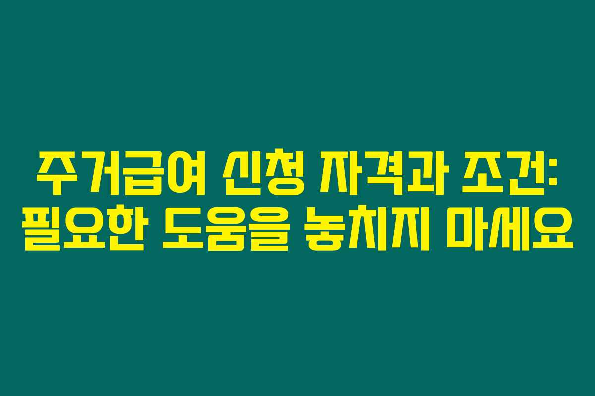 주거급여를 받기 위해서는 몇 가지 기본 요건을 충족해야 해요. 제가 확인한 바로는, 다음 조건을 갖추어야 합니다.