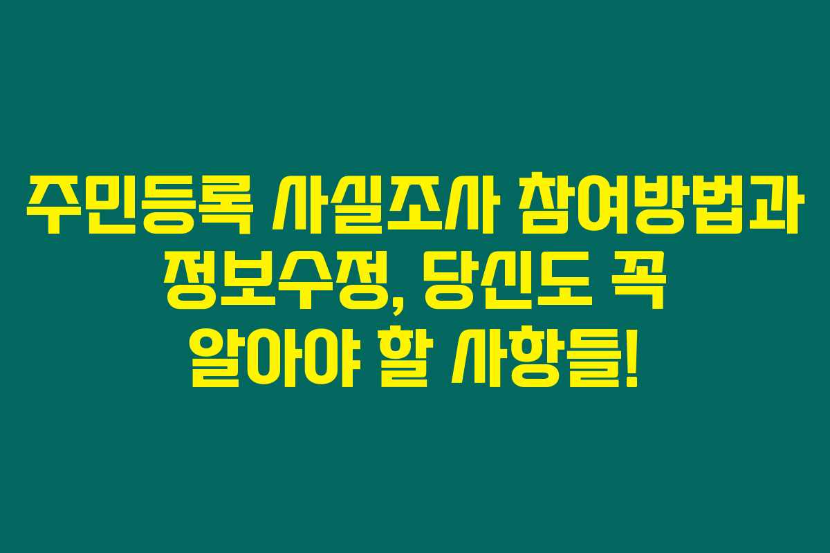 주민등록 사실조사에 대해 잘 알고 계신가요? 주민등록 사실조사에 참여하지 않았거나 정보를 잘못 입력하셨다면 불이익을 받을 수 있어요. 많은 분들이 이 과정을 놓치고 후회하는 경우가 많답니다. 아래를 읽어보시면 주민등록 사실조사 참여 방법과 정보 수정 방법에 대해 자세히 알 수 있어요.