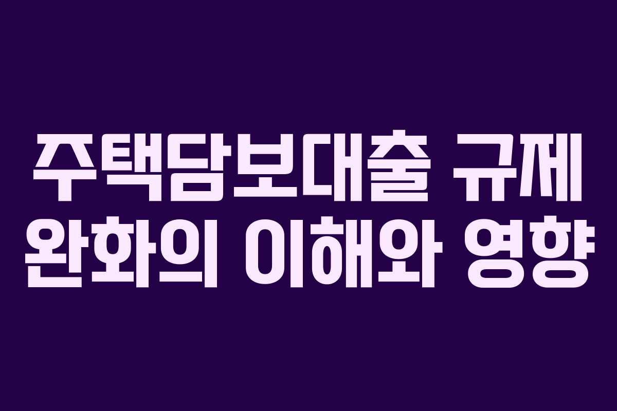 주택담보대출 규제 완화는 이러한 제한을 풀거나 완화하는 정책을 말합니다. 정부는 주택시장 활성화를 위해 일정 조건 하에 대출 규제를 완화하고 있으며, 이는 주택 가격 상승이나 금리 인상 등의 경제적 압박을 완화하려는 의도를 포함하고 있습니다.